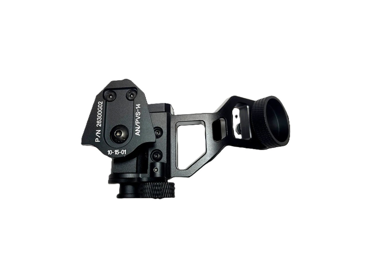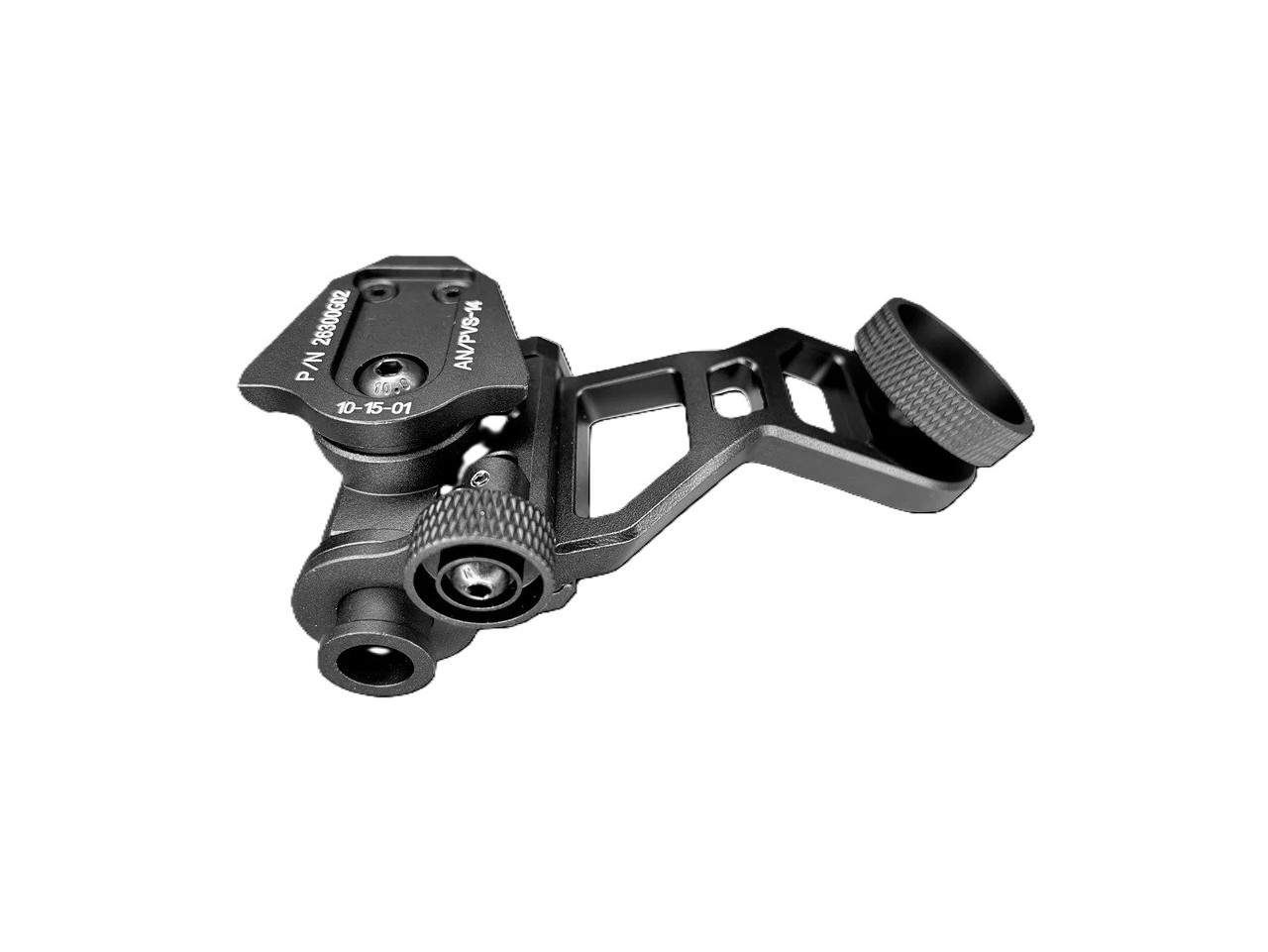 The Aluminum PVS14 NVG J Arm with NVG Interface Shoe provides a durable connection for mounting an AN/PVS-14 monocular to a NVG mount. It can be easily mounted and dismounted from the AN/PVS-14 monocular by means of a thumb screw, and allows the operator to select the height and angle for comfort with the ability to make fine adjustments to the arm. 110 degrees of motion accommodates right or left eye dominance. This Mounting Arm is only compatible with the AN/PVS-14 series of night vision monoculars and utilizes a dovetail interface.